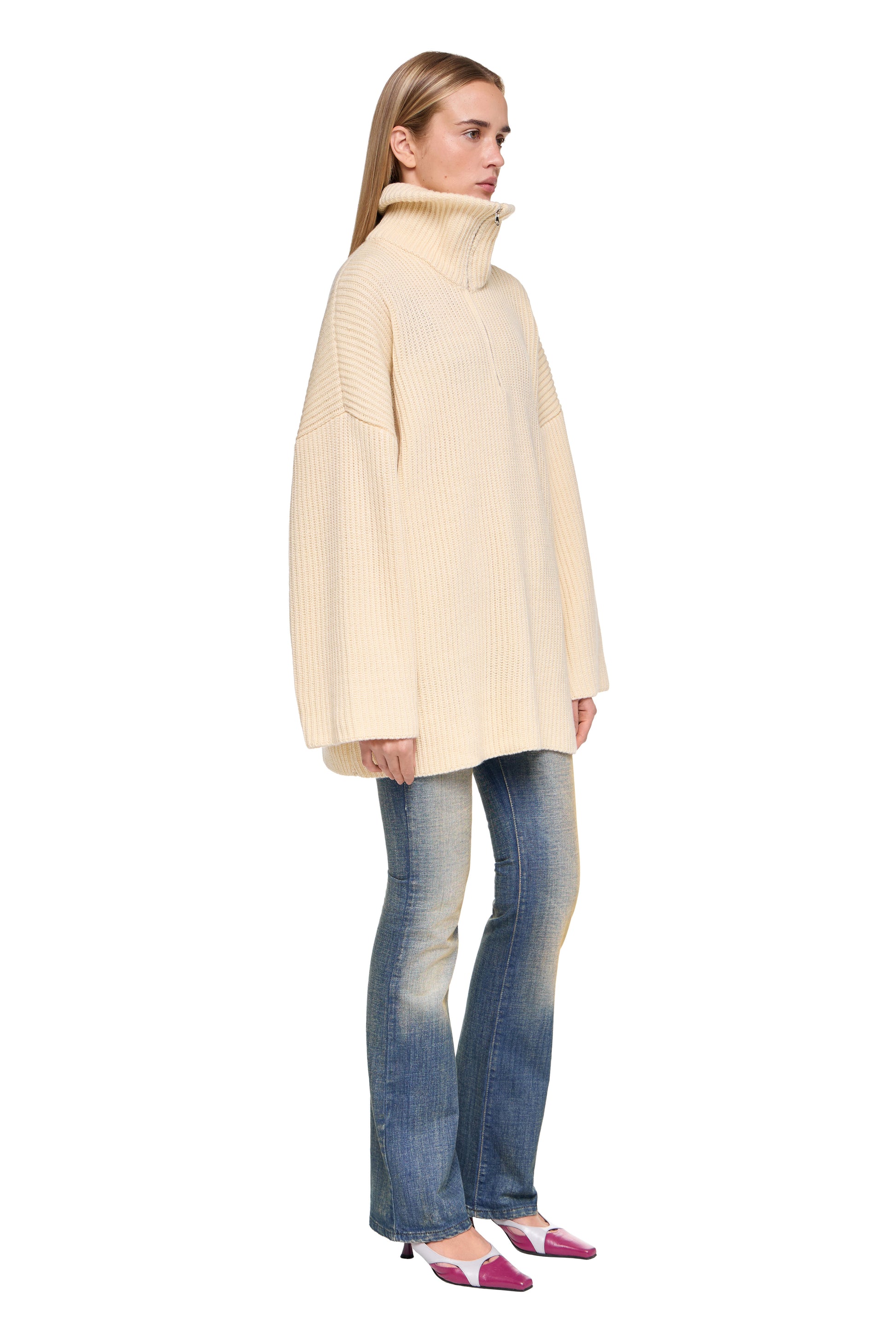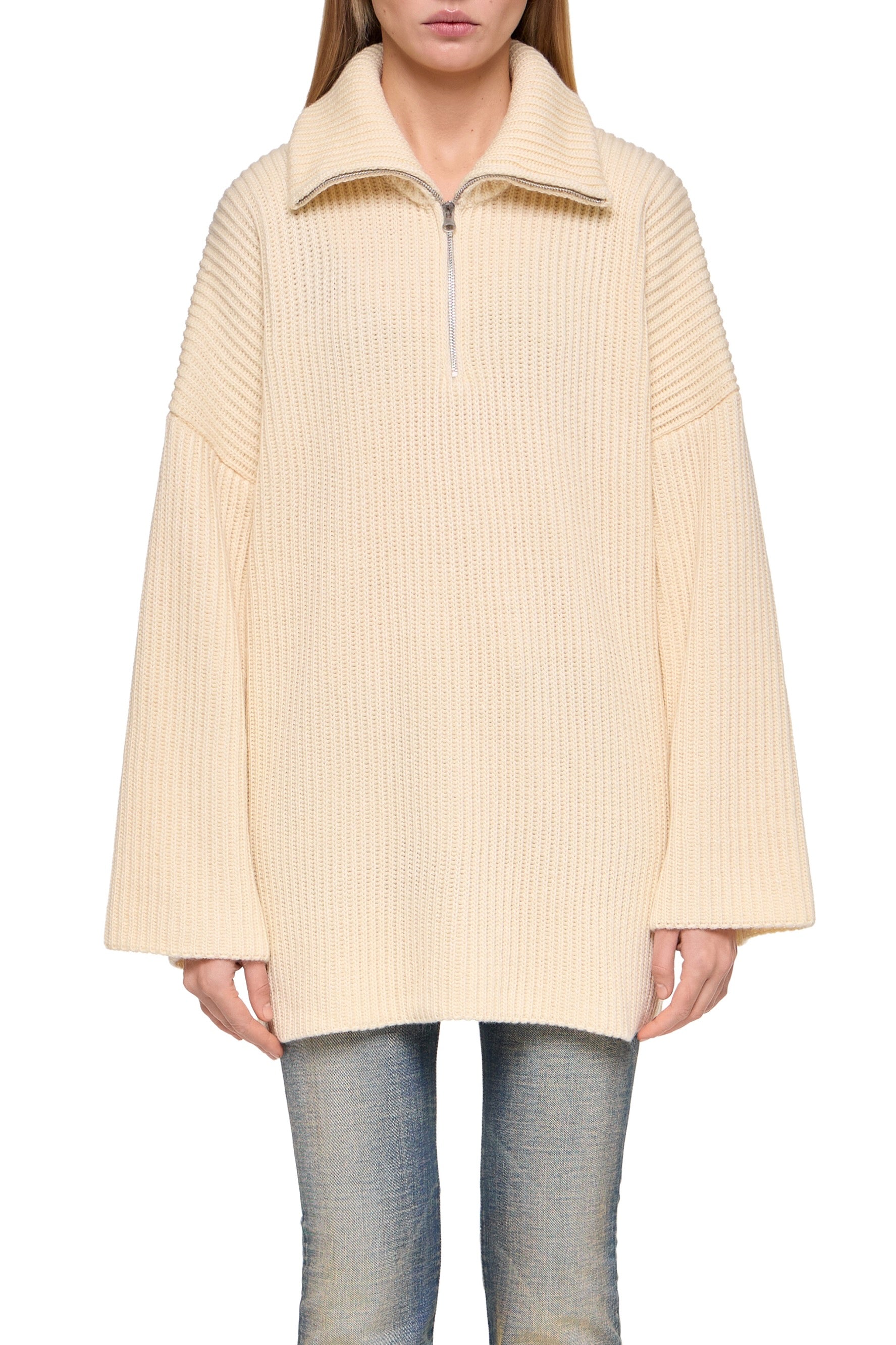 CREAM ZIP SWEATER