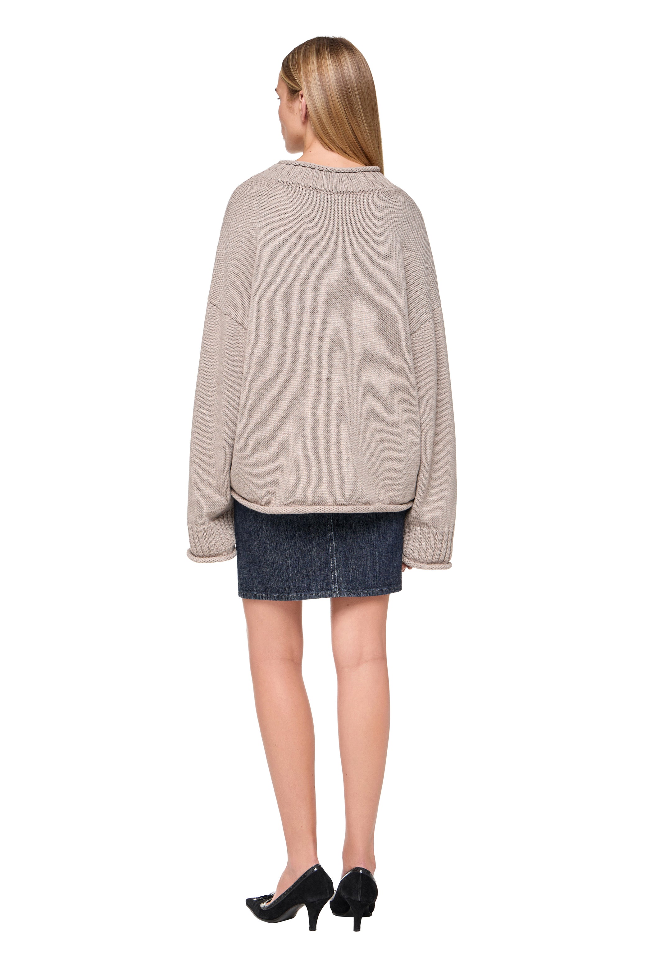 Актуальний відтінок в об’ємному силуеті з акцентною горловиною. В’язка середньої щільності, фактурні манжети, подовжений рукав — цей светр працює як центр образу. Легко поєднується з денімом, класичними штанами, шовковою спідницею чи сукнею. Органічно інтегрується в повсякденний гардероб і виглядає сильніше, ніж базовий.
