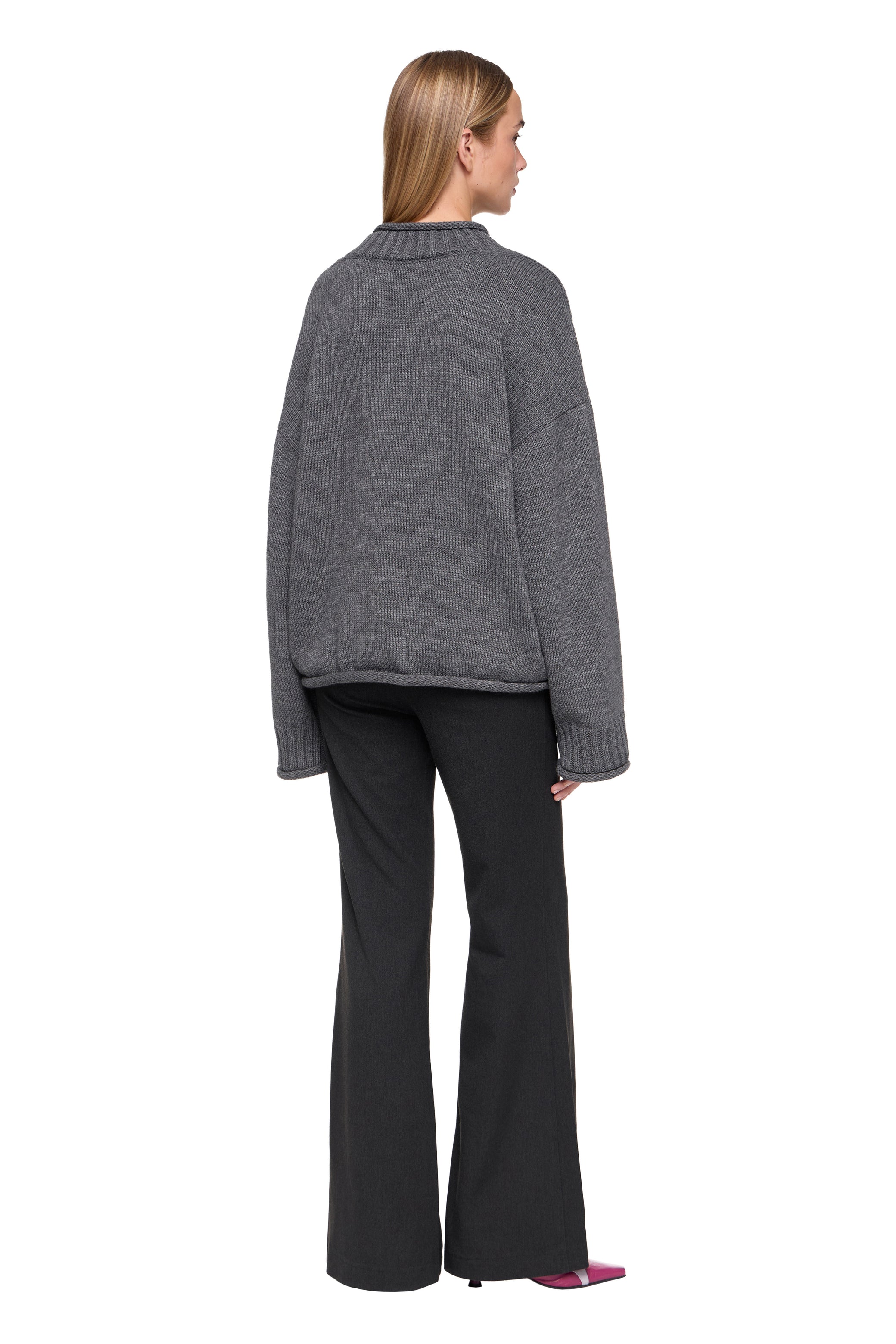 Актуальний відтінок в об’ємному силуеті з акцентною горловиною. В’язка середньої щільності, фактурні манжети, подовжений рукав — цей светр працює як центр образу. Легко поєднується з денімом, класичними штанами, шовковою спідницею чи сукнею. Органічно інтегрується в повсякденний гардероб і виглядає сильніше, ніж базовий.